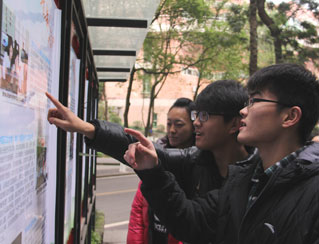 記者看到西南大學(xué)人流較大的傳媒大廣場(chǎng)擺放著印有實(shí)踐照片的展板,上面有團(tuán)隊(duì)成員在實(shí)踐中的照片、實(shí)踐感言以及活動(dòng)花絮等,而展板前均聚集了不少學(xué)生。帶隊(duì)老師李海峰對(duì)記者表示,希望能在全國(guó)高校中形成一種樂于實(shí)踐的氛圍,倡導(dǎo)大學(xué)生積極開展社會(huì)實(shí)踐。