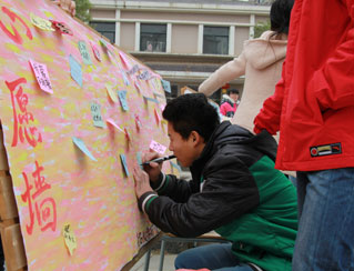 12月15日,南昌大學(xué)護(hù)理學(xué)院在醫(yī)學(xué)院新世紀(jì)廣場(chǎng)舉行了2013大學(xué)生社會(huì)實(shí)踐評(píng)選成果校園巡展。此次巡展共展出17塊展板,其中包括6塊獲獎(jiǎng)優(yōu)秀團(tuán)隊(duì)介紹板、6塊“愛佑童心”志愿者隊(duì)“愛佑之行”展板、3塊“愛·一起來”宣傳海報(bào)板、一塊留言板和一塊心愿墻展板。展板形象展現(xiàn)了“愛佑童心”三下鄉(xiāng)團(tuán)隊(duì)實(shí)踐全過程,從前期的緊張準(zhǔn)備、中期實(shí)踐到后期的精心總結(jié),將“愛佑童心”六支實(shí)踐隊(duì)伍的活動(dòng)詳細(xì)地展現(xiàn)給大家。最后,參觀者也在心愿墻為先心患兒寫下最真摯的祝福,“愛佑童心,加油”“祝愿先心患兒早日康復(fù)”“藍(lán)天白云之下,我們與愛佑同行”等等祝福心愿擠滿心愿墻。