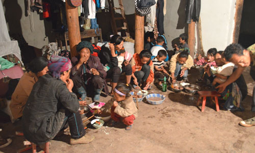 對于偏遠(yuǎn)山區(qū)的貧困與落后,雖然隊員們早有心理準(zhǔn)備,但實(shí)際到了兩河口鎮(zhèn),當(dāng)?shù)仄D苦的條件還是遠(yuǎn)遠(yuǎn)超出了這群在大城市里生活慣了的年輕人的想象。沒有網(wǎng)絡(luò),白天斷電,有時為了發(fā)送一條短信打一個電話需要走很遠(yuǎn)的路才會有信號。飲食也是一大挑戰(zhàn),實(shí)踐隊的伙食是清一色的土豆,而且一天只有兩頓土豆,這是當(dāng)?shù)氐牧?xí)俗。沒有桌子,所有人就在地上吃,沒有筷子就用手。煮的土豆吃膩了就吃烤土豆,扒皮后蘸點(diǎn)調(diào)料,吃得滿嘴滿手黑乎乎的。對于這樣的飲食方式,隊員們一開始的確不適應(yīng),覺得有點(diǎn)落后和不衛(wèi)生,但面對彝家人的熱情好客,隊員們也就入鄉(xiāng)隨俗,和彝家人一起享用起大山里的土豆來。為了感謝隊員們的付出,彝家人偶爾也會給隊員們做蕎麥餅換換口味。