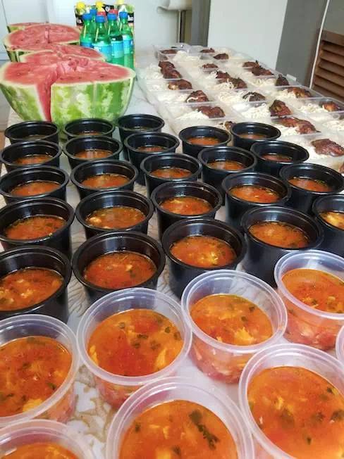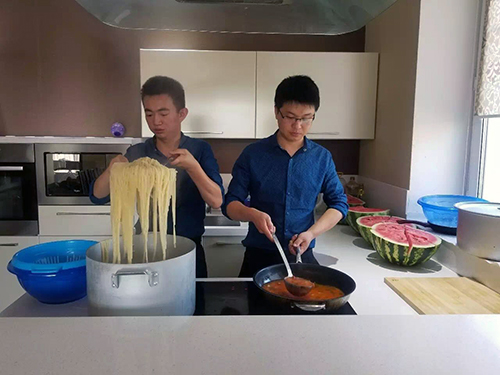 原來兩位大廚沒有任何幫手,從采購到洗菜、做飯、分飯?jiān)俚剿惋、洗洗刷刷全靠他們,這可比在酒店只當(dāng)后廚辛苦多了。當(dāng)?shù)貤l件有限,沒有國(guó)內(nèi)的明火燃?xì)猓⑺顾{當(dāng)?shù)貜N房只有電磁爐,受熱較慢且不均勻,對(duì)于廚藝和耐力都是不小的挑戰(zhàn)。剛開始時(shí),沒采購到食堂用大型電飯鍋,每天只能用普通家庭電飯鍋一鍋一鍋蒸,每天12鍋,從早忙到晚。從5月底來到阿斯塔納將近3個(gè)月,兩位大廚沒有完整休息過一天。