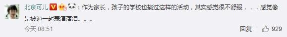 微信公眾號(hào)“ 三尺巷”評(píng)論稱:要防止儀式教育的濫用,跪拜禮是用錯(cuò)了儀式教育。學(xué)校管理者不能因?yàn)閷W(xué)生年齡越小,而越濫用權(quán)力,甚至對(duì)學(xué)生和家長(zhǎng)進(jìn)行道德綁架,甚至動(dòng)輒使用儀式教育。在公民私德培養(yǎng)上,對(duì)帶有強(qiáng)制秩序性的儀式教育尤須慎重。關(guān)涉感恩父母,如果是具體情境下的真情流露,比如子女做錯(cuò)事跪拜父母,完全可以理解接受。而這種甚至需要感情醞釀和統(tǒng)一指揮的表演性跪拜教育,對(duì)孩子浸潤(rùn)感恩之心有多大幫助實(shí)在難說(shuō)。
