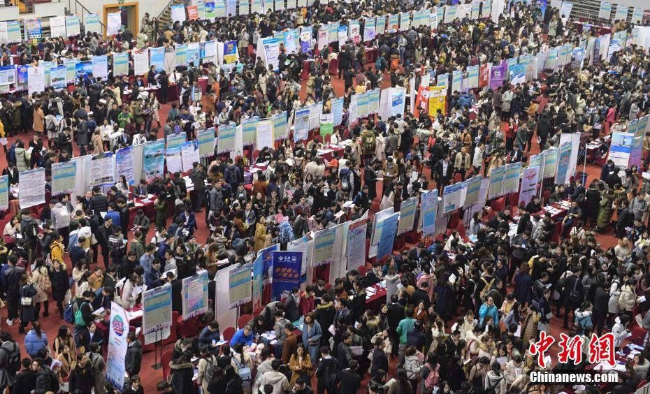 山東大學(xué)2019屆畢業(yè)生就業(yè)“雙選會(huì)”吸引眾多大學(xué)生前來(lái)應(yīng)聘。(中新網(wǎng))