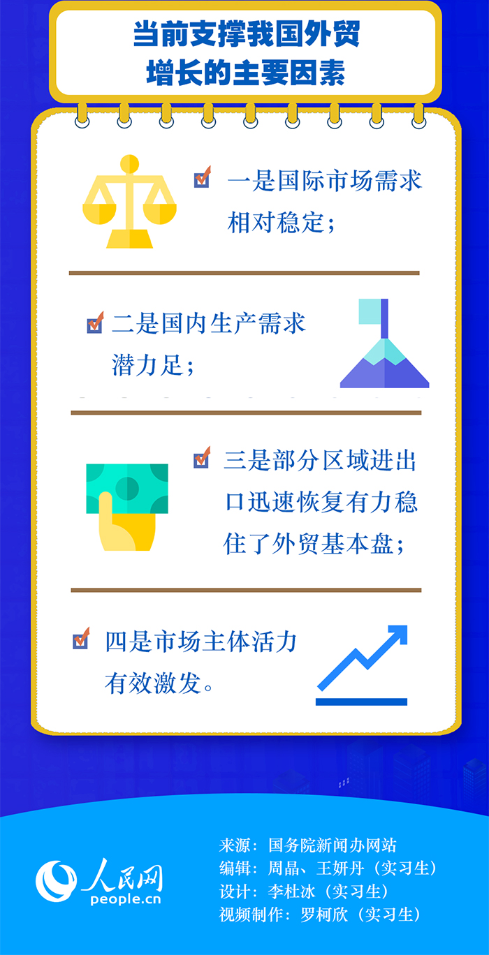商務(wù)部原副部長魏建國在接受人民網(wǎng)“強觀察”欄目記者采訪時表示,上半年的外貿(mào)增長主要有三方面原因:首先,高效統(tǒng)籌疫情防控和經(jīng)濟(jì)社會發(fā)展取得實效。其次,多措并舉穩(wěn)市場主體。隨著國家穩(wěn)經(jīng)濟(jì)一攬子政策措施的落地見效,外貿(mào)保穩(wěn)提質(zhì)等各項工作加快推進(jìn),我國外貿(mào)市場主體活力有效激發(fā)。此外,以國內(nèi)大循環(huán)為主體、國內(nèi)國際雙循環(huán)相互促進(jìn)的新發(fā)展格局的作用正在發(fā)揮出來。