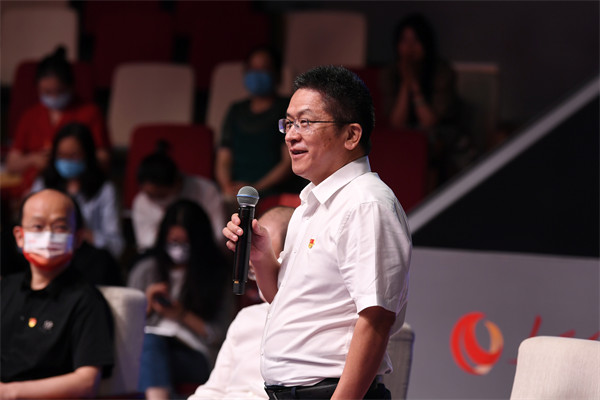 特邀嘉賓中央和國(guó)家機(jī)關(guān)工委基層組織建設(shè)指導(dǎo)部一處處長(zhǎng)黃文明向選手提問(wèn)