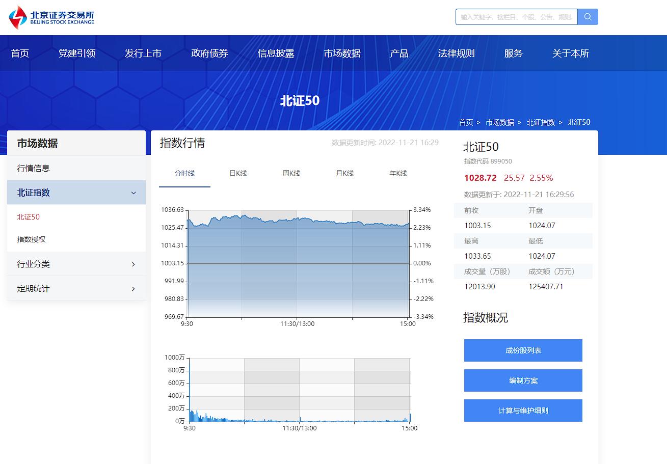 北交所首個(gè)指數(shù)——北證50成份指數(shù)(簡稱北證50)于11月21日正式發(fā)布實(shí)時(shí)行情。上線首日,北證50收盤上漲2.55%,報(bào)1028.72點(diǎn),開盤后走勢平穩(wěn),樣本股成交活躍,提高了整個(gè)市場活躍度。據(jù)了解,北證50以2022年4月29日為基日,基點(diǎn)為1000點(diǎn)。