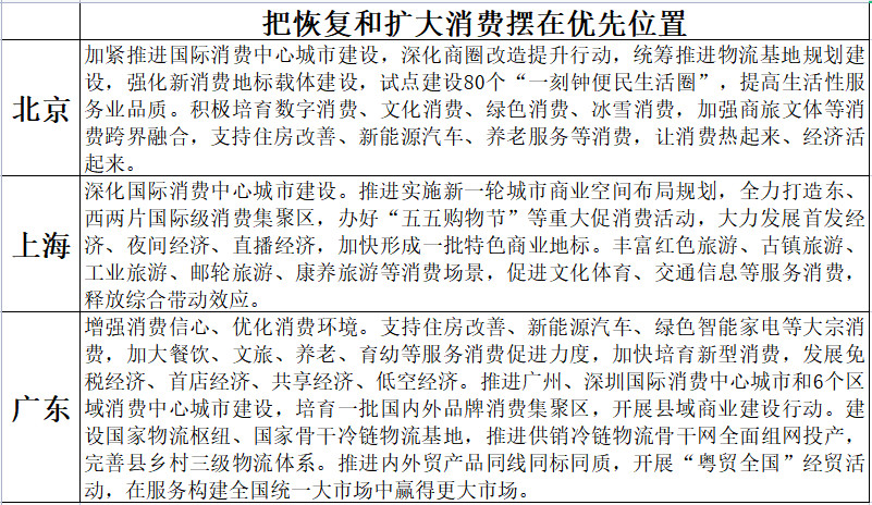 針對近期中央經(jīng)濟(jì)工作會議提出的“要把恢復(fù)和擴(kuò)大消費(fèi)擺在優(yōu)先位置”,地方政府將擴(kuò)大內(nèi)需尤其是促進(jìn)消費(fèi)恢復(fù)作為2023年政策的重點。