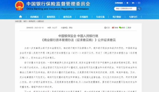 《商業(yè)銀行資本管理辦法(征求意見(jiàn)稿)》 中國(guó)銀保監(jiān)會(huì)官網(wǎng)截圖